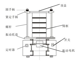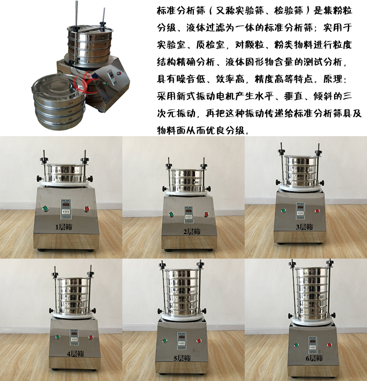 2、把標(biāo)準(zhǔn)篩具按孔徑從小到大,從下到上依次疊放到托盤座上,由凹槽或定位螺絲對(duì)標(biāo)準(zhǔn)篩進(jìn)行定位。